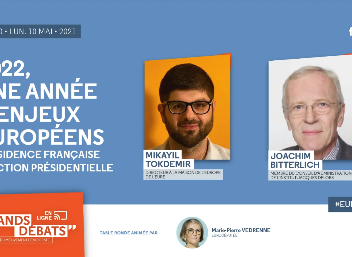 Ce Grand Débat se tiendra lundi 10mai à 18h30 et sera animé par l'eurodéputée Marie-Pierre Vedrenne, en présence de Mikayil Tokdemir, directeur à la Maison de l’Europe de l’Eure et Joachim Bitterlich, membre du conseil d’administration de l'Institut Jacques Delors.