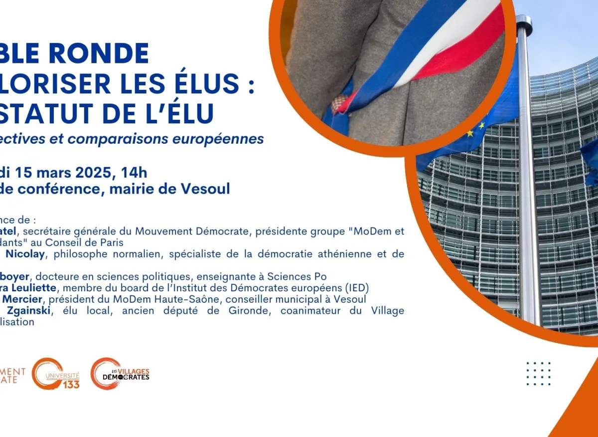 Le Mouvement Démocrate, U133 et les Villages Démocrates, vous convient le 15 mars prochain à Vesoul pour une table ronde.
