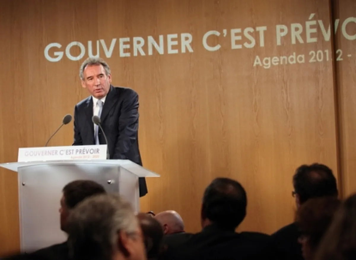 François Bayrou a présenté son "Agenda 2012-2020", qui traduit sa méthode et sa démarche de gouvernance, lors d'une conférence de presse, mercredi 30 novembre à Paris.