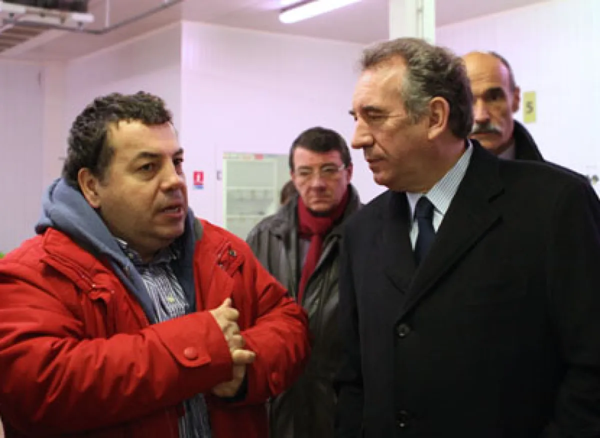 C'est aux côtés de Dominique Versini, co-fondatrice du Samu Social et ancienne secrétaire d'Etat chargée de la lutte contre la précarité et l'exclusion, que François Bayrou est arrivé peu après 9 heures à l'atelier d'insertion "Le potager de Marianne", à Rungis dans le Val-de-Marne. Cette association collecte des produits consommables du Marché d'Intérêt National (MIN) de Rungis, invendus et destiné à être jeté ou mis en compost, pour les redistribuer dans les réseaux des Restos du Cœur, du Secours Populaire ou encore de la Croix Rouge.