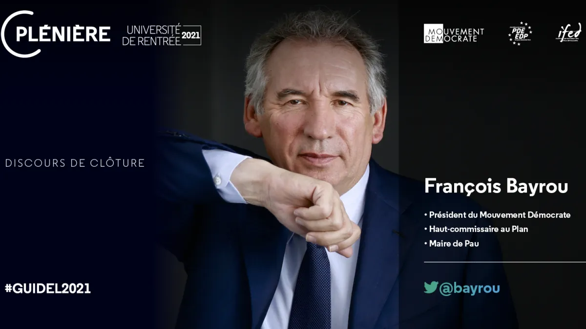 Nous vous invitons à découvrir le discours de clôture de notre Université de rentrée 2021, prononcé par François Bayrou, Président du Mouvement Démocrate.